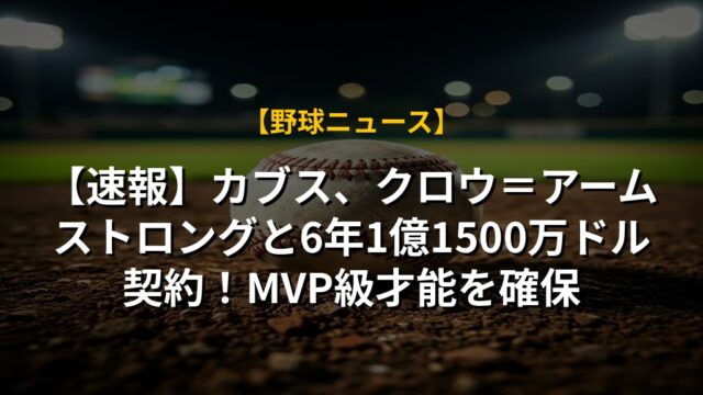 【速報】カブス、クロウ=アームストロングと6年1億1500万ドル契約!MVP級才能を確保