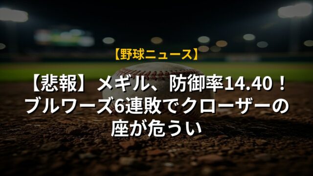 【悲報】メギル、防御率14.40!ブルワーズ6連敗でクローザーの座が危うい