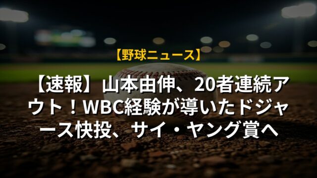 【速報】山本由伸、20者連続アウト!WBC経験が導いたドジャース快投、サイ・ヤング賞へ