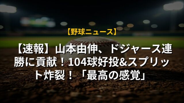 【速報】山本由伸、ドジャース連勝に貢献!104球好投&スプリット炸裂!「最高の感覚」