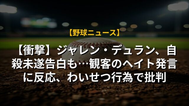 【衝撃】ジャレン・デュラン、自殺発言に中指…過去のハラスメントも告白、野球選手メンタルヘルス問題とは
