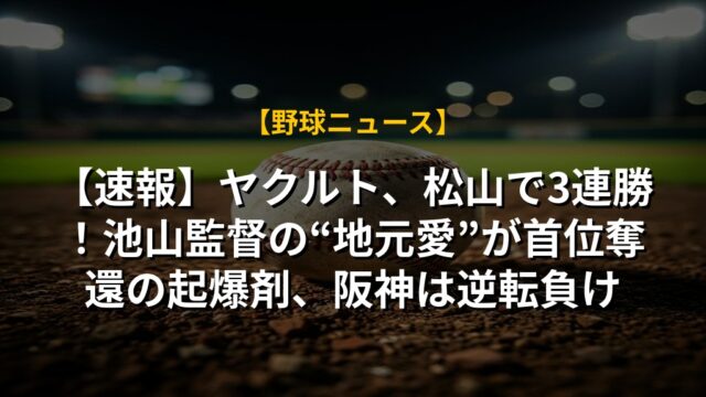 【速報】ヤクルト、松山で3連勝!池山監督の“地元愛”が首位奪還の起爆剤、阪神は逆転負け