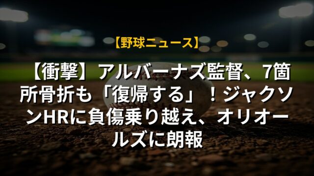 【衝撃】アルバーナズ監督、7箇所骨折も「復帰する」!ジャクソンHRに負傷乗り越え、オリオールズに朗報