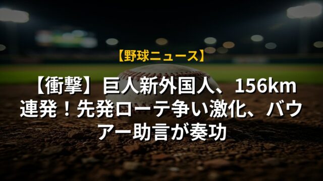 【衝撃】巨人新外国人、156km連発!先発ローテ争い激化、バウアー助言が奏功