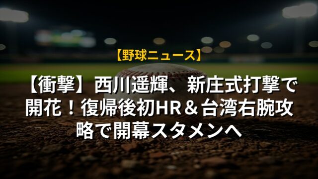 【衝撃】西川遥輝、新庄式打撃で開花!復帰後初HR&台湾右腕攻略で開幕スタメンへ