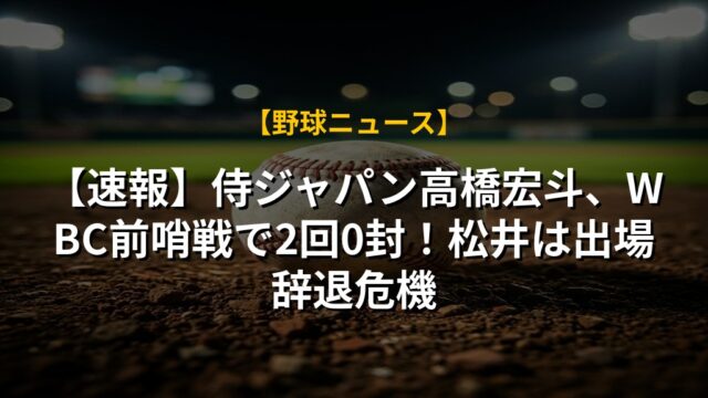 【速報】侍ジャパン高橋宏斗、WBC前哨戦で2回0封!松井は出場辞退危機