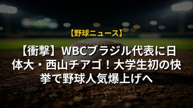 【衝撃】WBCブラジル代表に日体大・西山チアゴ!大学生初の快挙で野球人気爆上げへ