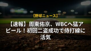 【速報】周東佑京、WBCへ猛アピール!初回二盗成功で侍打線に活気