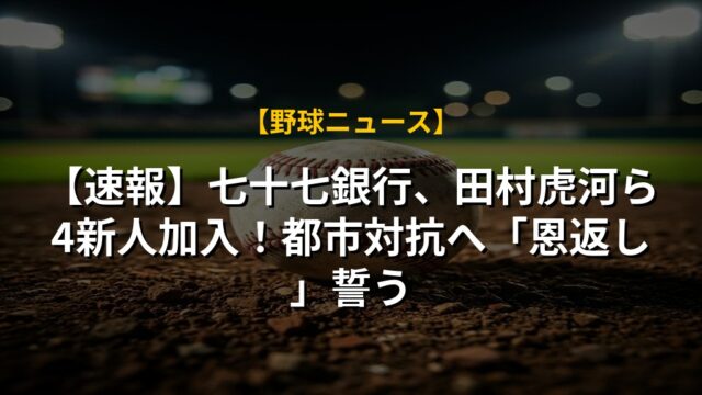 【速報】七十七銀行、田村虎河ら4新人加入!都市対抗へ「恩返し」誓う