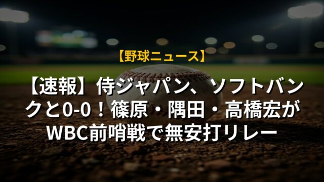 【速報】侍ジャパン、ソフトバンクと0-0!篠原・隅田・高橋宏がWBC前哨戦で無安打リレー
