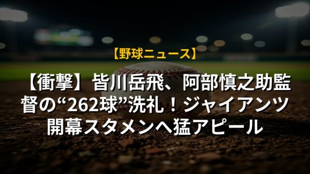 【衝撃】皆川岳飛、阿部慎之助監督の“262球”洗礼!ジャイアンツ開幕スタメンへ猛アピール