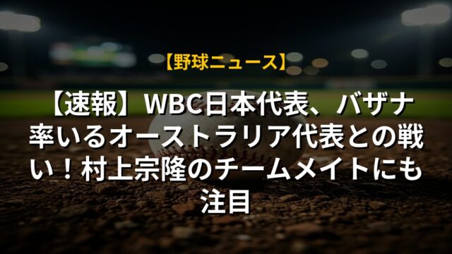 【速報】WBC日本代表、バザナ率いるオーストラリア代表との戦い!村上宗隆のチームメイトにも注目