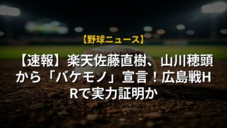 【速報】楽天佐藤直樹、山川穂頭から「バケモノ」宣言!広島戦HRで実力証明か