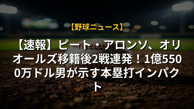 【速報】ピート・アロンソ、オリオールズ移籍後2戦連発!1億5500万ドル男が示す本塁打インパクト