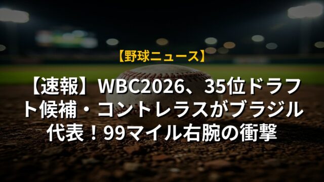 【速報】WBC2026、35位ドラフト候補・コントレラスがブラジル代表!99マイル右腕の衝撃