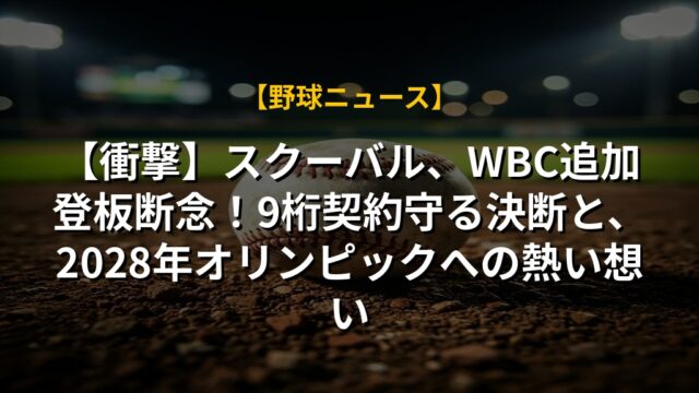 【衝撃】スクーバル、WBC追加登板断念!9桁契約守る決断と、2028年オリンピックへの熱い想い