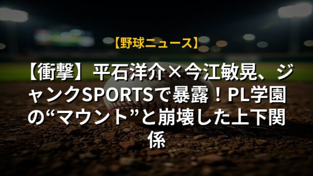 【衝撃】平石洋介×今江敏晃、ジャンクSPORTSで暴露!PL学園の“マウント”と崩壊した上下関係
