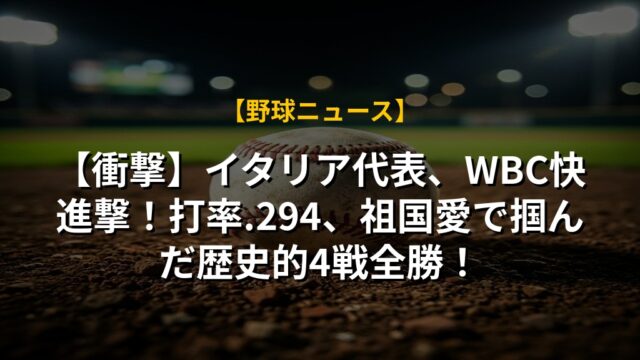 【衝撃】イタリア代表、WBC快進撃!打率.294、祖国愛で掴んだ歴史的4戦全勝!