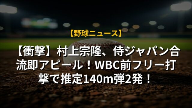 【衝撃】村上宗隆、侍ジャパン合流即アピール!WBC前フリー打撃で推定140m弾2発!