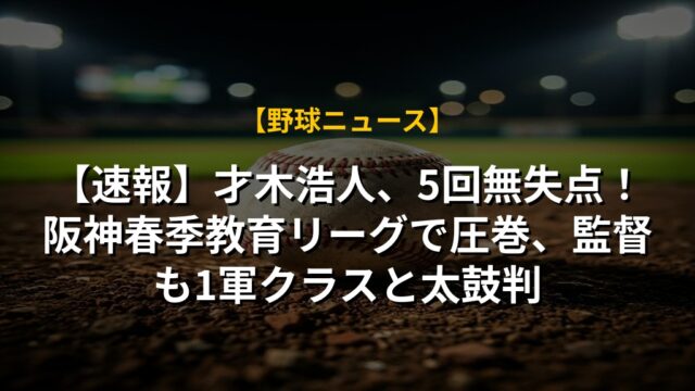 【速報】才木浩人、5回無失点!阪神春季教育リーグで圧巻、監督も1軍クラスと太鼓判