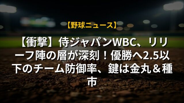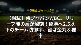 【衝撃】侍ジャパンWBC、リリーフ陣の層が深刻!優勝へ2.5以下のチーム防御率、鍵は金丸&種市