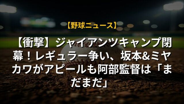 【衝撃】ジャイアンツキャンプ閉幕!レギュラー争い、坂本&ミヤカワがアピールも阿部監督は「まだまだ」
