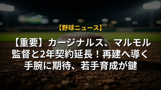【重要】カージナルス、マルモル監督と2年契約延長!再建へ導く手腕に期待、若手育成が鍵