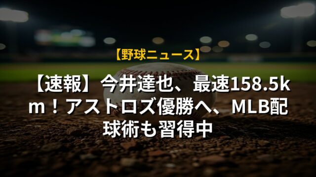 【速報】今井達也、最速158.5km!アストロズ優勝へ、MLB配球術も習得中