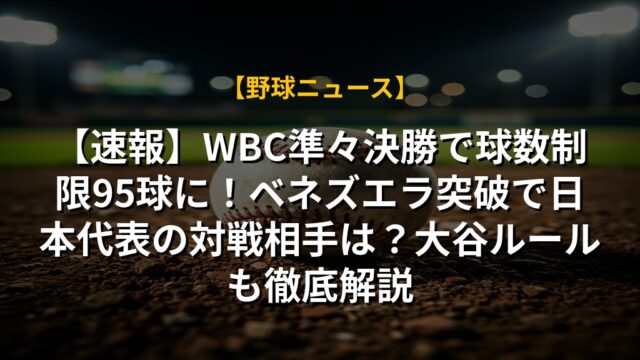 【速報】WBC準々決勝で球数制限95球に!ベネズエラ突破で日本代表の対戦相手は?大谷ルールも徹底解説