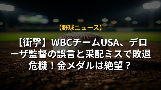 【速報】WBCアメリカ代表、ジャッジ&山本由伸対策!デローザ監督の戦略は?プールB制覇への道筋