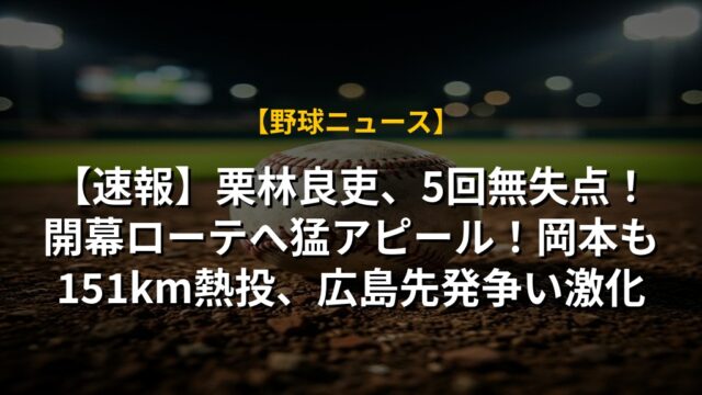 【速報】床田寛樹、開幕投手決定!10年目の大役へ、広島エースが掴んだ栄光