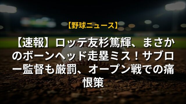 【速報】ロッテ友杉篤輝、まさかのボーンヘッド走塁ミス!サブロー監督も厳罰、オープン戦での痛恨策