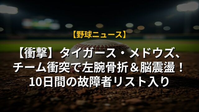 【衝撃】タイガース・メドウズ、チーム衝突で左腕骨折&脳震盪!10日間の故障者リスト入り