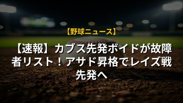 【速報】カブス先発ボイドが故障者リスト!アサド昇格でレイズ戦先発へ