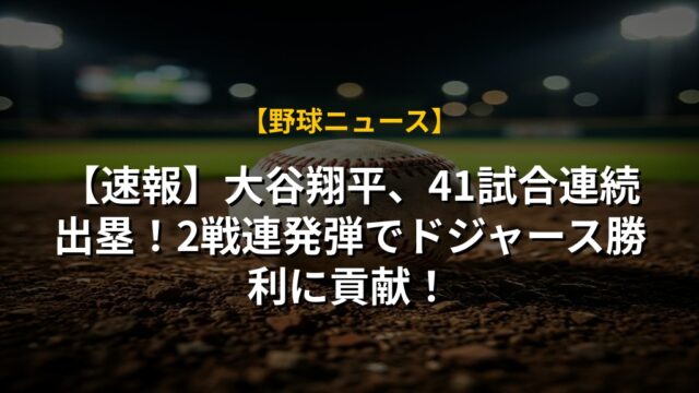 【速報】大谷翔平、41試合連続出塁!2戦連発弾でドジャース勝利に貢献!