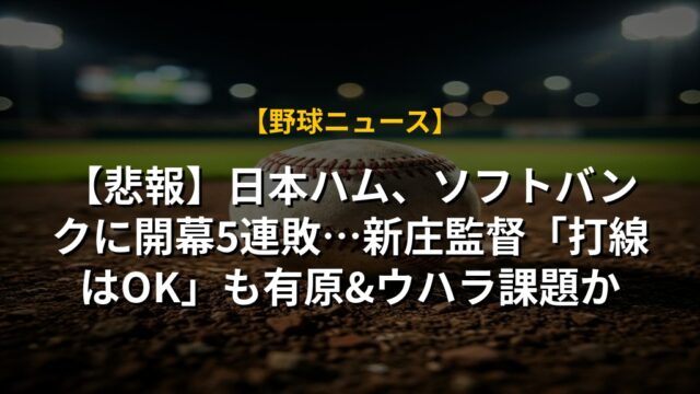 【悲報】日本ハム、ソフトバンクに開幕5連敗…新庄監督「打線はOK」も有原&ウハラ課題か