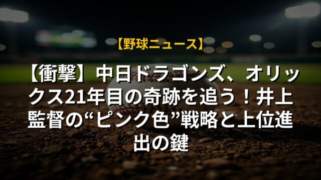 【衝撃】中日ドラゴンズ、オリックス21年目の奇跡を追う!井上監督の“ピンク色”戦略と上位進出の鍵