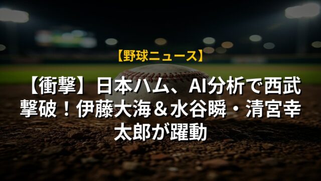 【衝撃】日本ハム、AI分析で西武撃破!伊藤大海&水谷瞬・清宮幸太郎が躍動