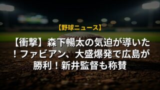 【衝撃】森下暢太の気迫が導いた!ファビアン、大盛爆発で広島が勝利!新井監督も称賛