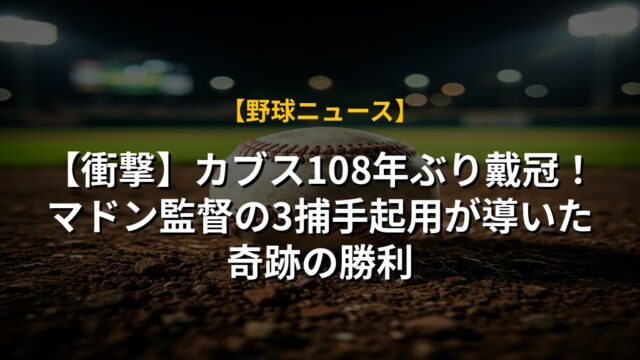 【衝撃】カブス108年ぶり戴冠!マドン監督の3捕手起用が導いた奇跡の勝利