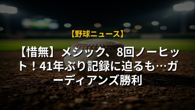 【惜無】メシック、8回ノーヒット!41年ぶり記録に迫るも…ガーディアンズ勝利
