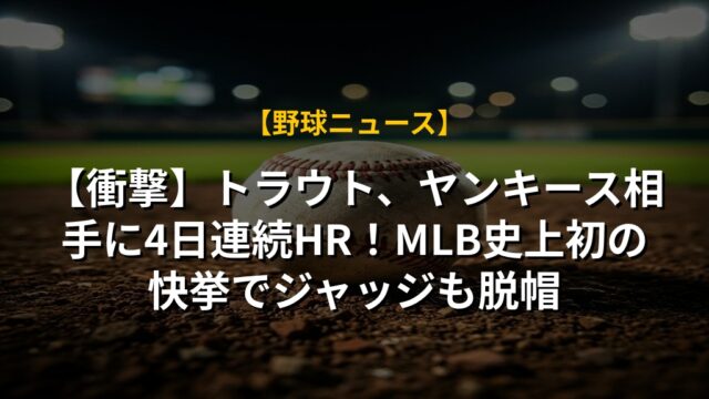 【衝撃】トラウト、ヤンキース相手に4日連続HR!MLB史上初の快挙でジャッジも脱帽