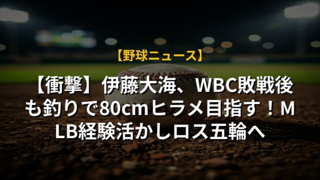 【衝撃】伊藤大海、WBC敗戦後も釣りで80cmヒラメ目指す!MLB経験活かしロス五輪へ