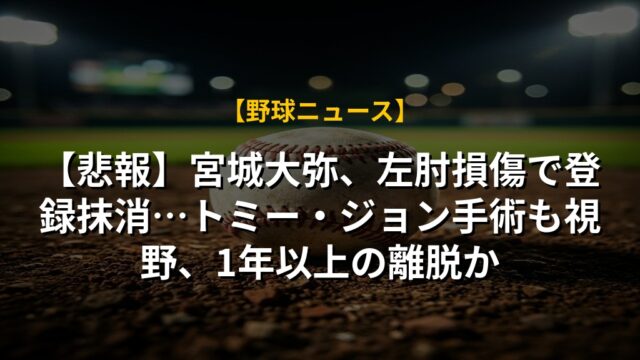 【悲報】宮城大弥、左肘損傷で登録抹消…トミー・ジョン手術も視野、1年以上の離脱か