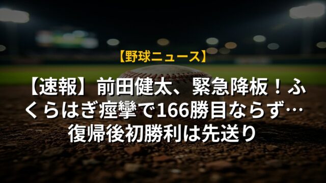 【速報】前田健太、緊急降板!ふくらはぎ痙攣で166勝目ならず…復帰後初勝利は先送り