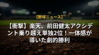 【衝撃】楽天、前田健太アクシデント乗り越え単独2位!一体感が導いた劇的勝利