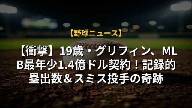 【衝撃】19歳・グリフィン、MLB最年少1.4億ドル契約!記録的塁出数&スミス投手の奇跡