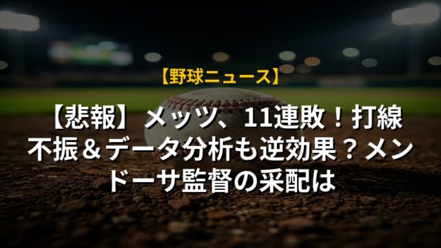 【悲報】メッツ9連敗!打線不振でソト不在も…スターンズ代表はメンドーサ監督を支持、再建に希望?