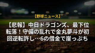【悲報】中日ドラゴンズ、最下位転落!守備の乱れで金丸夢斗が初回逆転許し…6の借金で崖っぷち