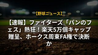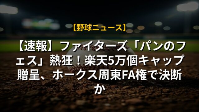【速報】ファイターズ「パンのフェス」熱狂!楽天5万個キャップ贈呈、ホークス周東FA権で決断か